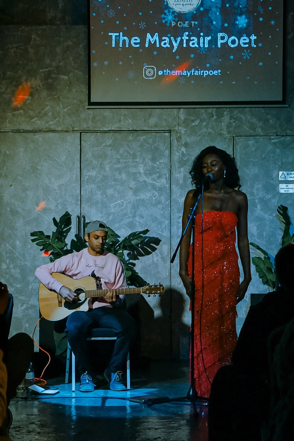 Bring your event to life with powerful spoken word. The Mayfair Poet delivers personalised performances for intimate gatherings, corporate events and cultural showcases—crafted to inspire, entertain and connect. For an immersive experience, she can also provide live or recorded musical accompaniment to complement the poetry.